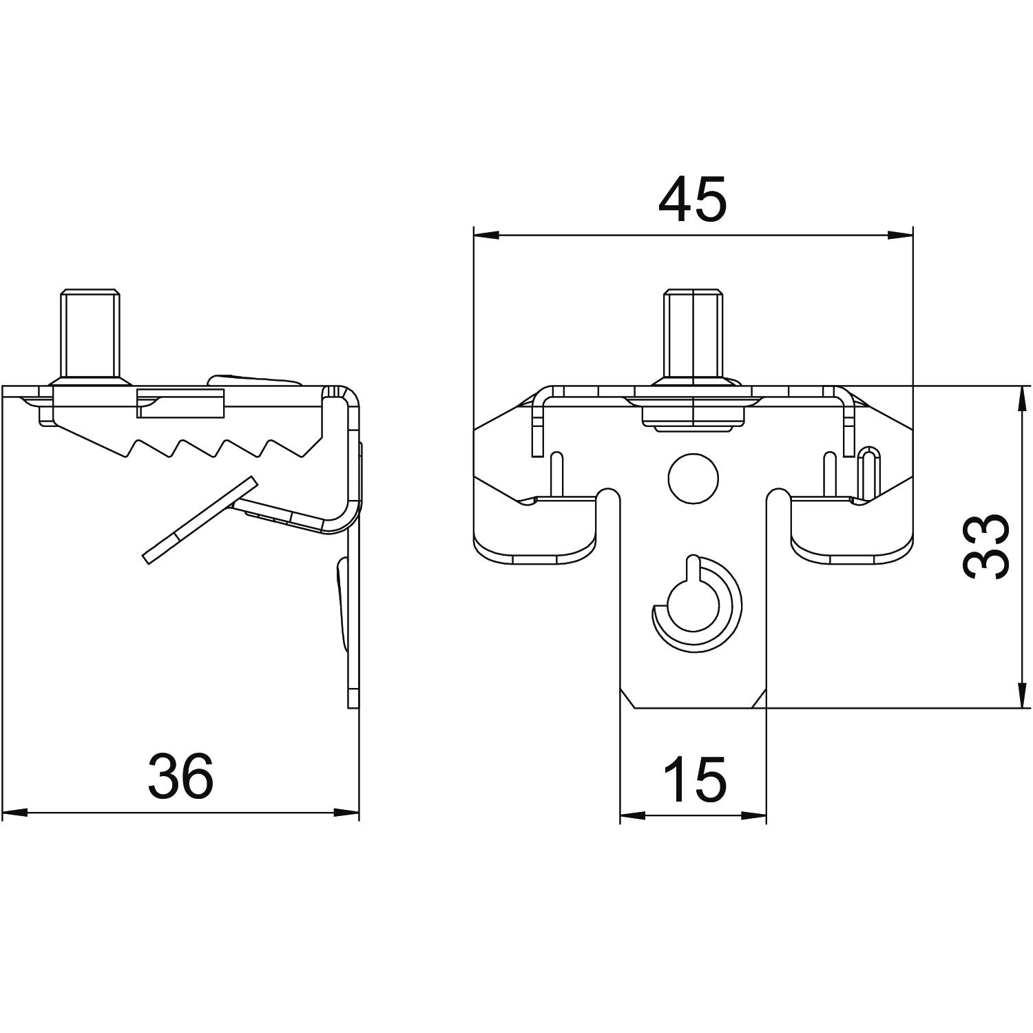 Altura 36 mm Carga de rutura 0,45 kN Comprimento 33 mm Cor zinco Dimensão 3-7mm Dobradiça não Dobradiça ajustável não Espessura do flange F máx. 7 mm Espessura do flange F mín. 3 mm Largura 45 mm Material Aço Medida L 33 mm Rosca M6 x 9 mm Rosca métrica 6 Superfície Lamela de zinco Tipo de fixação apertar Tipo de ligação do componente Rosca - Todos os tipos