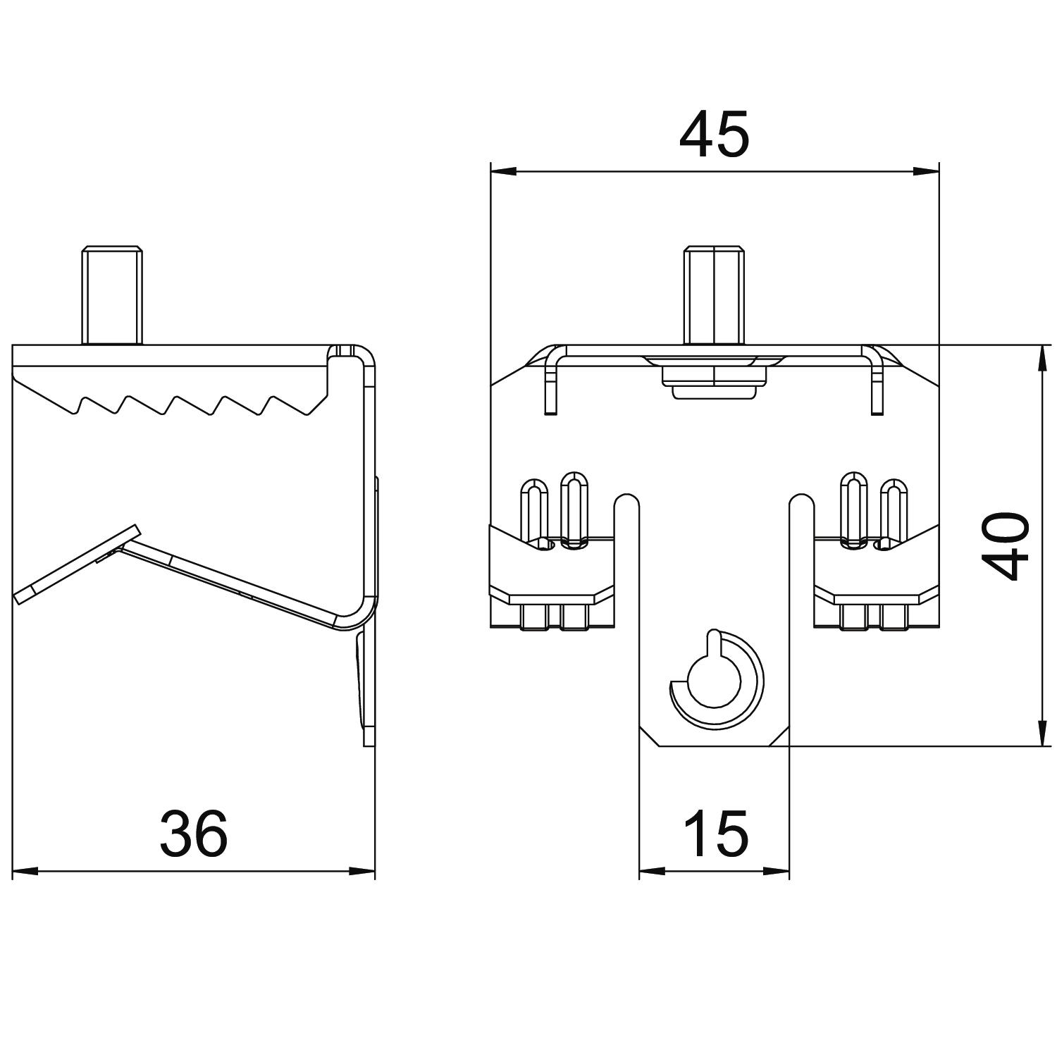 Descrição do produtoClip de suspensão com perno roscado M6 inferior para soluções de montagem personalizadas. Fixação a vigas de aço por martelagem.