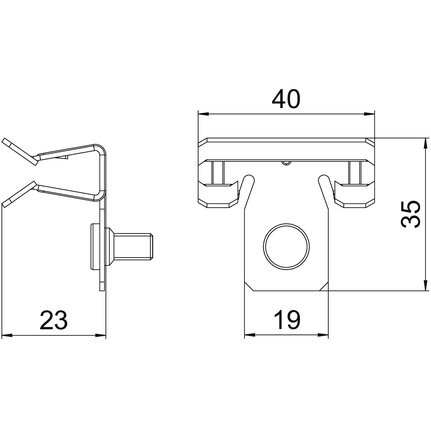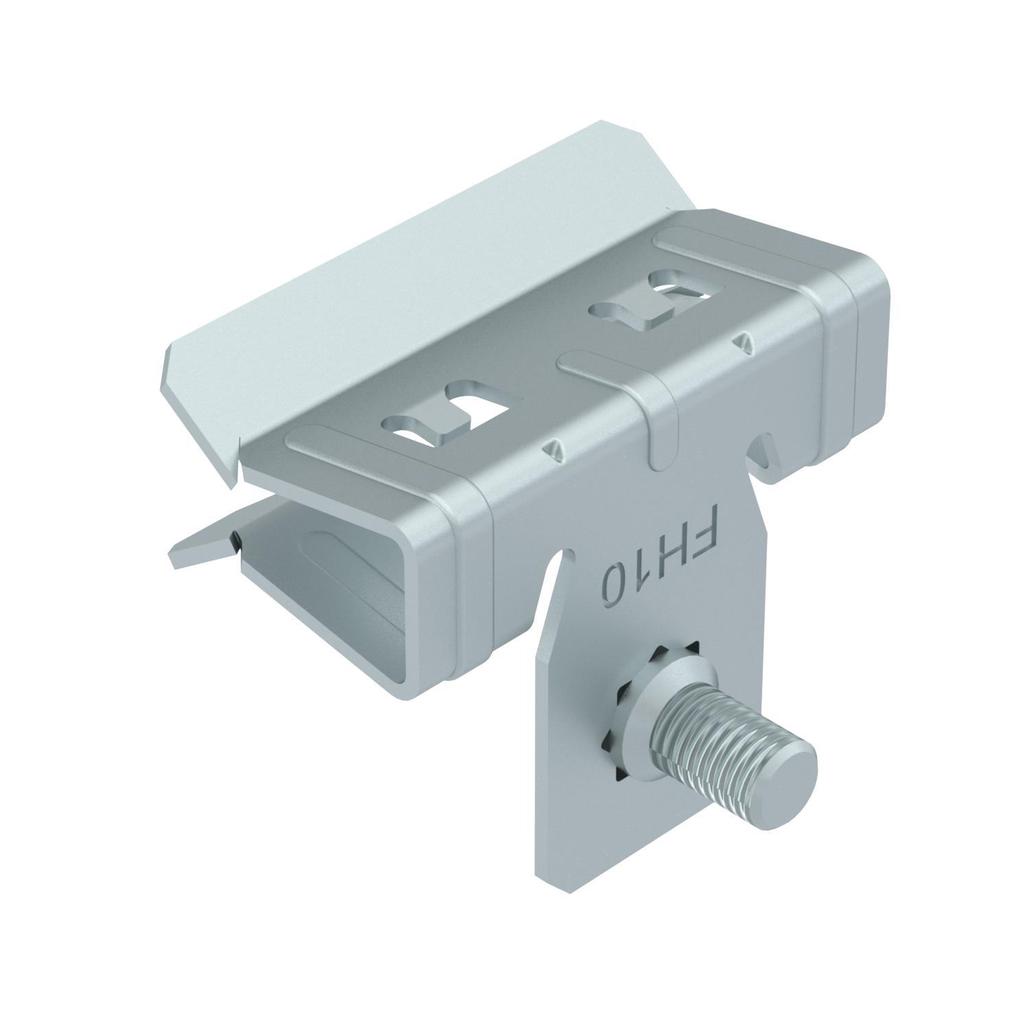 Descrição do produtoClip de suspensão com perno roscado M6 na lateral para soluções de montagem personalizadas. Fixação a vigas de aço por martelagem.