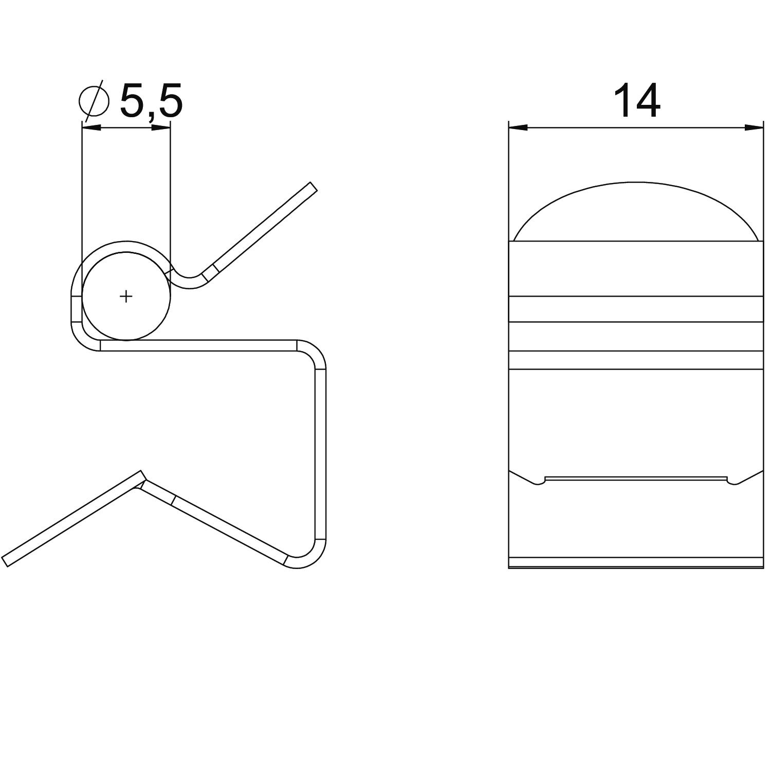 Altura 21 mm Comprimento 18 mm Cor zinco Diâmetro do cabo/tubo máx. 5 mm Diâmetro do cabo/tubo mín. 4 mm Dimensão 7,5-12mm Dimension W 14 mm Dobradiça não Dobradiça ajustável não Espessura do flange F máx. 12 mm Espessura do flange F mín. 7,5 mm Largura 14 mm Material Aço Superfície Lamela de zinco Tipo de fixação apertar Tipo de ligação do componente Cabo/Tubo - Todos os tipos