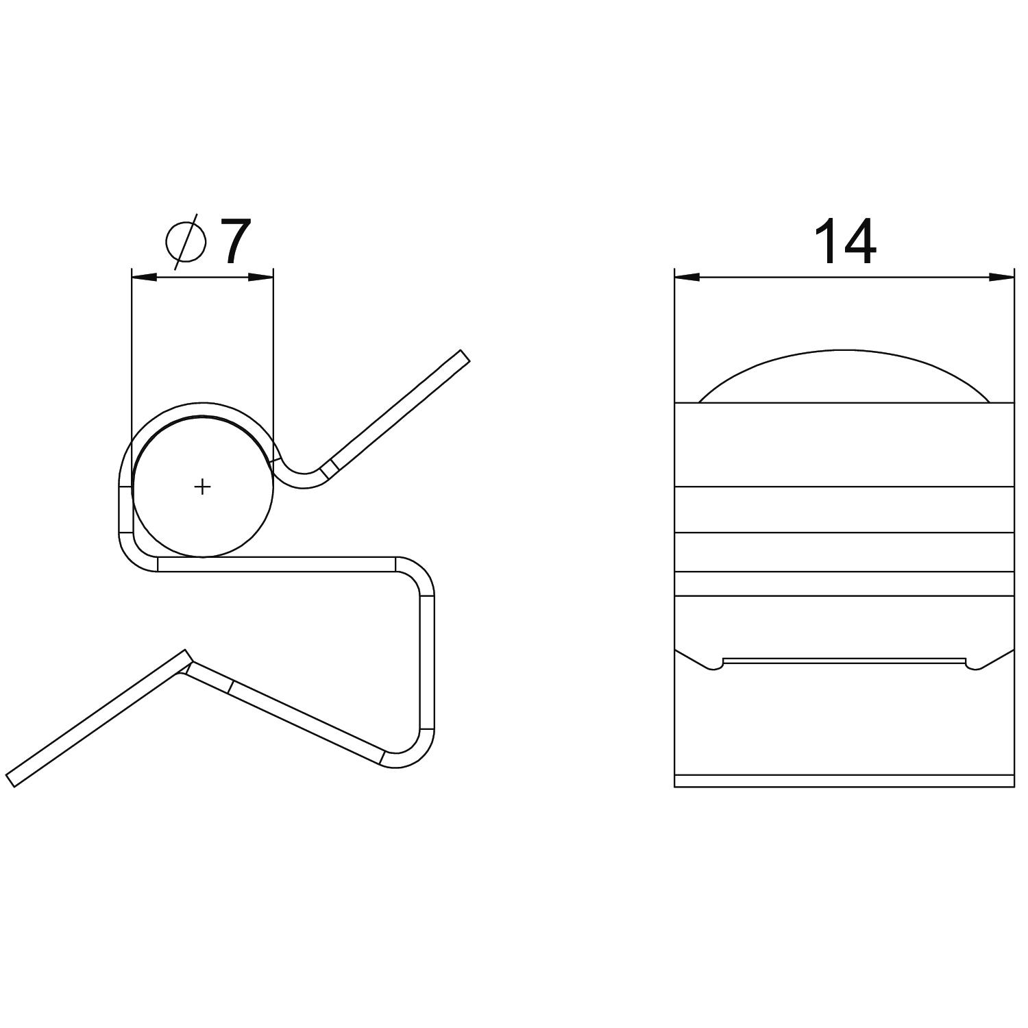 Altura 18 mm Comprimento 19 mm Cor zinco Diâmetro do cabo/tubo máx. 7 mm Diâmetro do cabo/tubo mín. 6 mm Dimensão 7,5-12mm Dimension W 14 mm Dobradiça não Dobradiça ajustável não Espessura do flange F máx. 12 mm Espessura do flange F mín. 7,5 mm Largura 14 mm Material Aço Superfície Lamela de zinco Tipo de fixação apertar Tipo de ligação do componente Cabo/Tubo - Todos os tipos