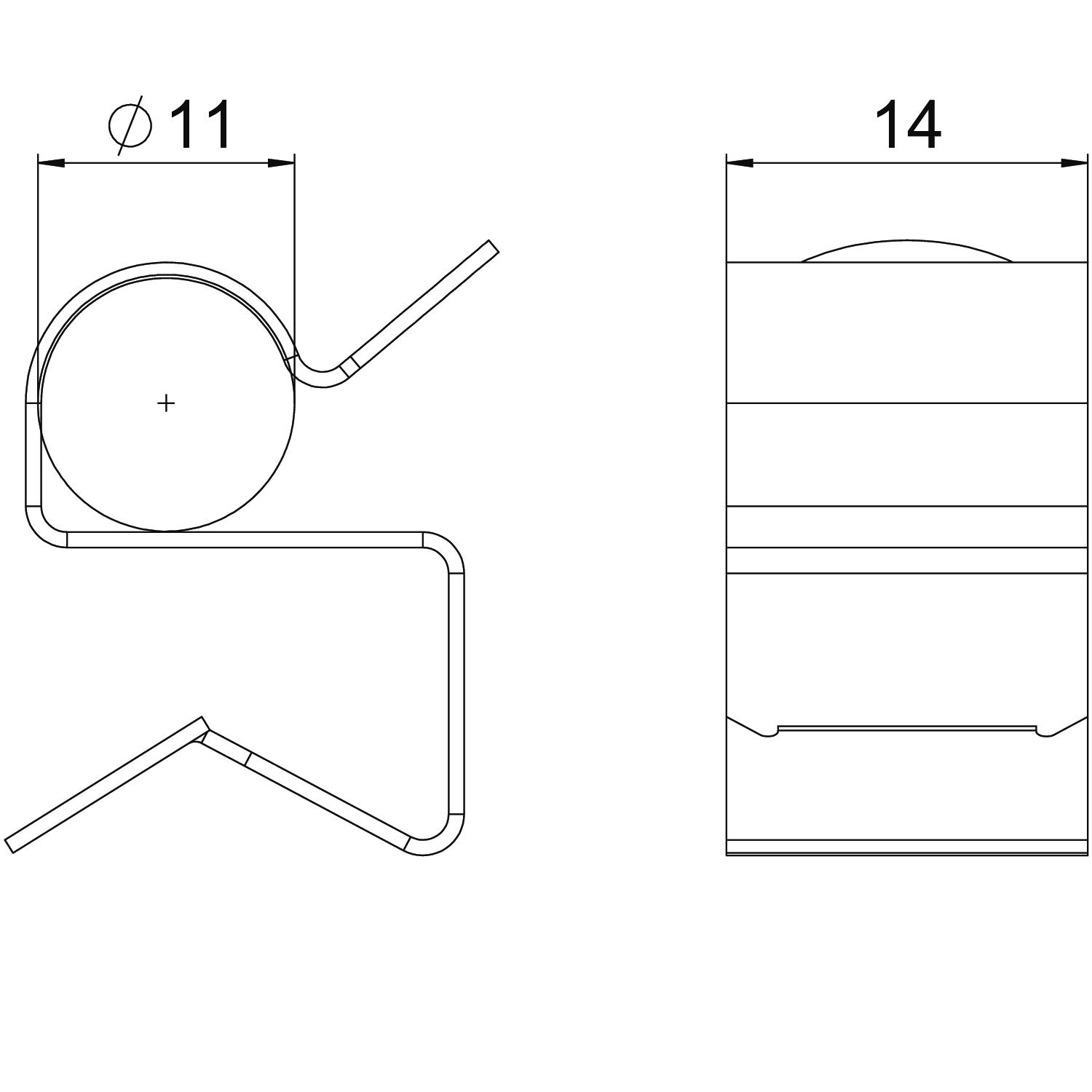 Altura 24 mm Comprimento 19 mm Cor zinco Diâmetro do cabo/tubo máx. 11 mm Diâmetro do cabo/tubo mín. 10 mm Dimensão 7,5-12mm Dimension W 14 mm Dobradiça não Dobradiça ajustável não Espessura do flange F máx. 12 mm Espessura do flange F mín. 7,5 mm Largura 14 mm Material Aço Superfície Lamela de zinco Tipo de fixação apertar Tipo de ligação do componente Cabo/Tubo - Todos os tipos