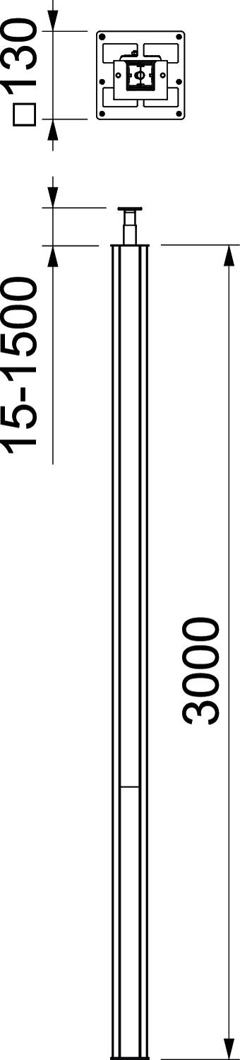 A coluna de distribuição está equipada com um dispositivo de aperto interno, que possibilita uma fixação confortável entre o chão e o teto. Através de um telescópio extensível, o intervalo de aperto é de 3015 mm - 4500 mm. Os cabos e os fios podem ser inseridos no perfil principal, quer através do tubo quadrado telescópico, quer diretamente a partir de baixo ou de cima.