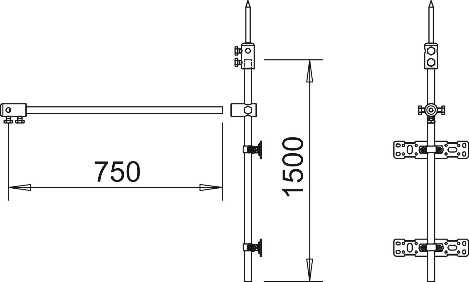 Descrição do produtoFixação em triângulo para um captor isolado com uma distância de separação s.