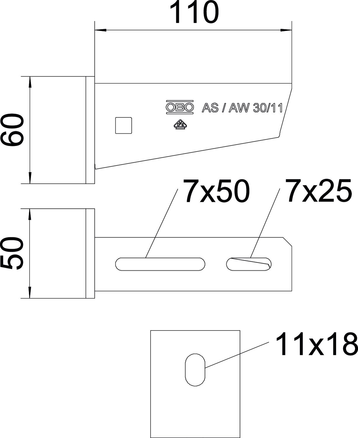 As consolas com a largura de 110-160 mm têm um furo de fixação de 11 x 18 mm, a largura de 210-610 mm está equipada com um furo de fixação de 13 x 20 mm. Na montagem da consola em perfis U, é aplicado, para a fixação da consola ao perfil, um parafuso de cabeça boleada ou um parafuso sextavado de acordo com a largura do perfil. A partir de uma largura da consola de 500 mm, a consola é fixa com parafusos sextavados, lado a lado, do perfil U. Para isso, devem ser aplicados distanciadores adequados ao perfil. O revestimento da superfície é galvanização por imersão a quente, com elevada espessura de zinco.