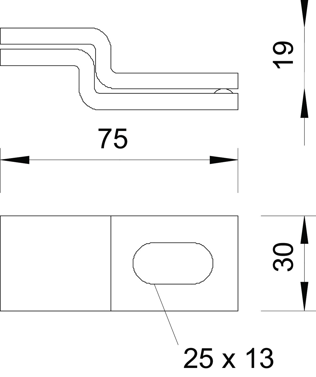 Altura 19 mm Comprimento 75 mm Cor zinco Largura 30 mm Material Aço Pegada de CO2 (GWP) do berço ao portão 0,4222 kg CO2e / 1 Peça Superfície Galvanizado por imersão a quente após maquinação - Todos os tipos