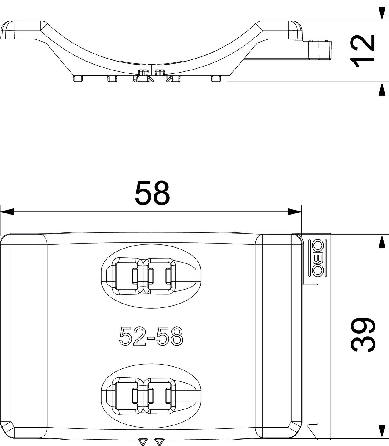 Adequado a diâmetros de cabo máx. 58 mm Cor cinzento claro; RAL 7035 Dimensão 52-58mm Intervalo de aperto D máx. 58 mm Intervalo de aperto D mín. 52 mm Material Polipropileno Medida B 63,5 mm Medida H 11,8 mm Medida L 40 mm Pegada de CO2 (GWP) do berço ao portão 0,0267 kg CO2e / 1 Peça Versão da contra placa/abraçadeiras Contraplaca - Todos os tipos