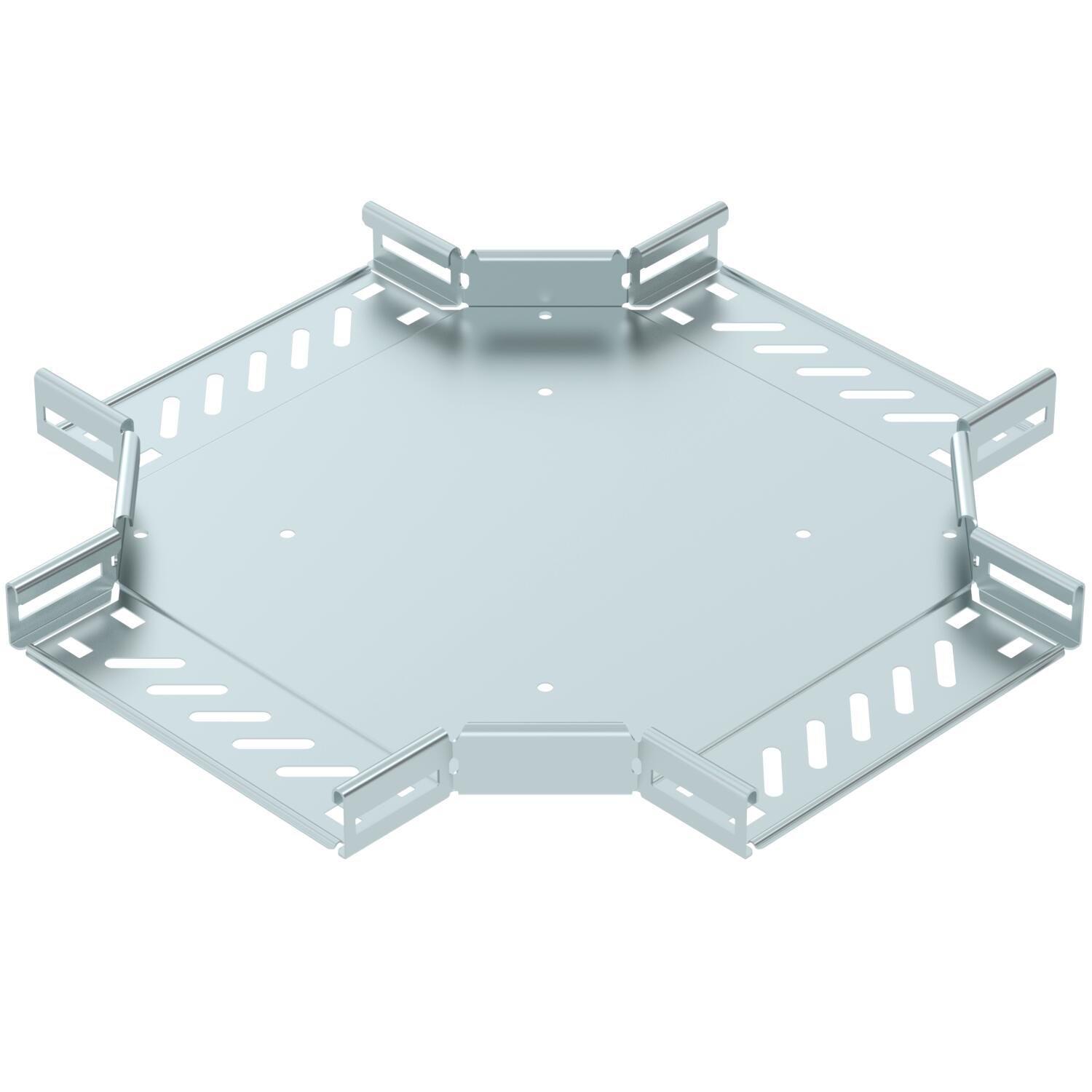 Descrição do produtoCruzeta para a criação de um ramal horizontal, para caminhos de cabos em chapa de encaixe e de aparafusar, altura lateral de 35 mm. Ligação roscada com parafusos de cabeça boleada FRS e porcas combinadas M6. Aplicável em áreas interiores. O material de fixação terá que ser encomendado em separado.