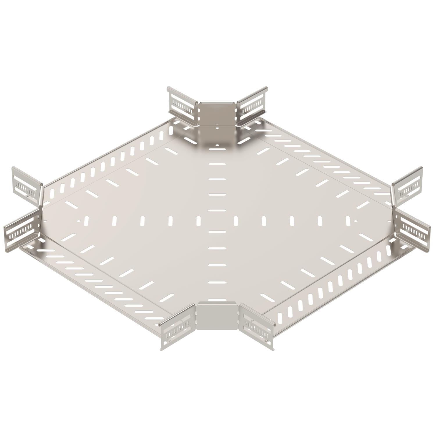 Descrição do produtoCruzeta para a criação de um ramal horizontal, para caminhos de cabos em chapa de encaixe e de aparafusar, altura lateral de 60 mm. Montagem sem parafusos com grampos duplos ou ligação roscada com parafusos de cabeça boleada FRS e porcas combinadas M6. Indicado para áreas interiores e exteriores. O material de fixação terá que ser encomendado em separado.