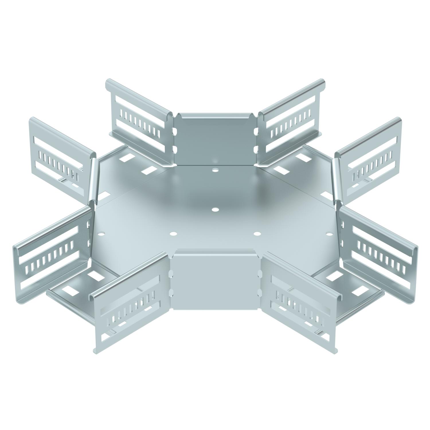 Descrição do produtoCruzeta para a criação de um ramal horizontal, para caminhos de cabos em chapa de encaixe e de aparafusar, altura lateral de 60 mm. Montagem sem parafusos com grampos duplos ou ligação roscada com parafusos de cabeça boleada FRS e porcas combinadas M6. Aplicável em áreas interiores. O material de fixação terá que ser encomendado em separado.