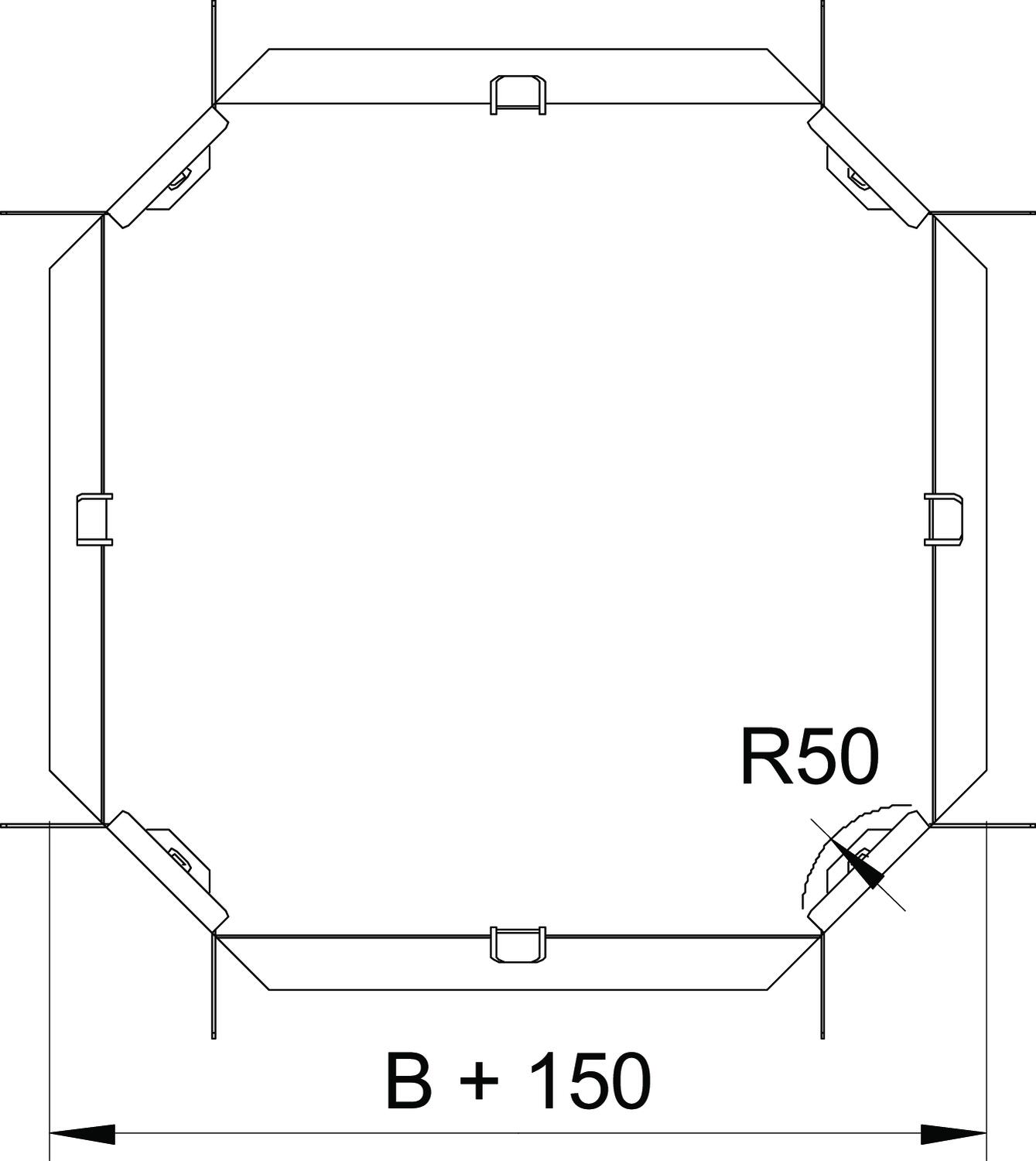 Descrição do produtoIntersecção, horizontal, para todos os tipos de caminhos de cabos em chapa com 60 mm de altura lateral.