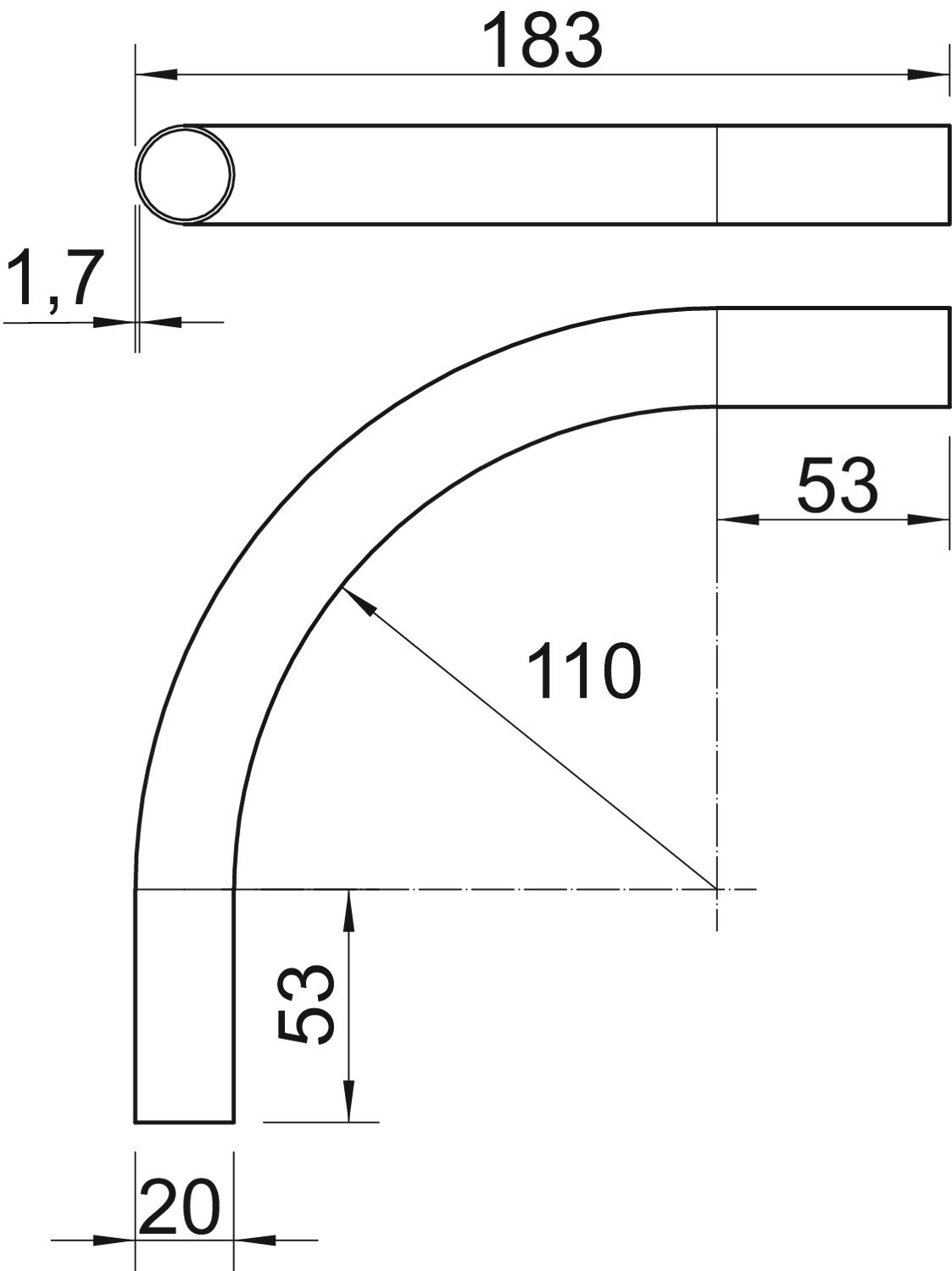 Ângulo do curva 90 ° Com manga não Comprimento 183 mm Cor cinzento claro; RAL 7035 Dimensão Ø20mm Flexível não Livre de halogéneos sim Material Policarbonato/acrilonitrila-butadieno-estireno Medida A 53 mm Medida D 20 mm Medida L 183 mm Medida M (mm) M20 Medida R 110 mm Medida t 1,7 mm para diâmetro nominal de tubo 20 mm Versão Encaixe - Todos os tipos