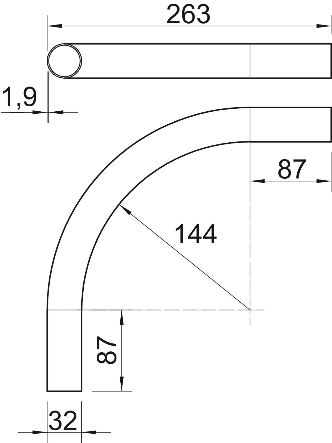 Ângulo do curva 90 ° Com manga não Comprimento 263 mm Cor cinzento claro; RAL 7035 Dimensão Ø32mm Flexível não Livre de halogéneos sim Material Policarbonato/acrilonitrila-butadieno-estireno Medida A 87 mm Medida D 32 mm Medida L 263 mm Medida M (mm) M32 Medida R 144 mm Medida t 1,9 mm para diâmetro nominal de tubo 32 mm Versão Encaixe - Todos os tipos
