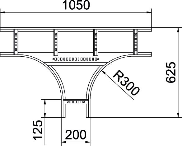 Descrição do produtoDerivação em T, horizontal, com degraus soldados para todos os caminhos de cabos tipo escada com uma altura lateral de 110 mm.