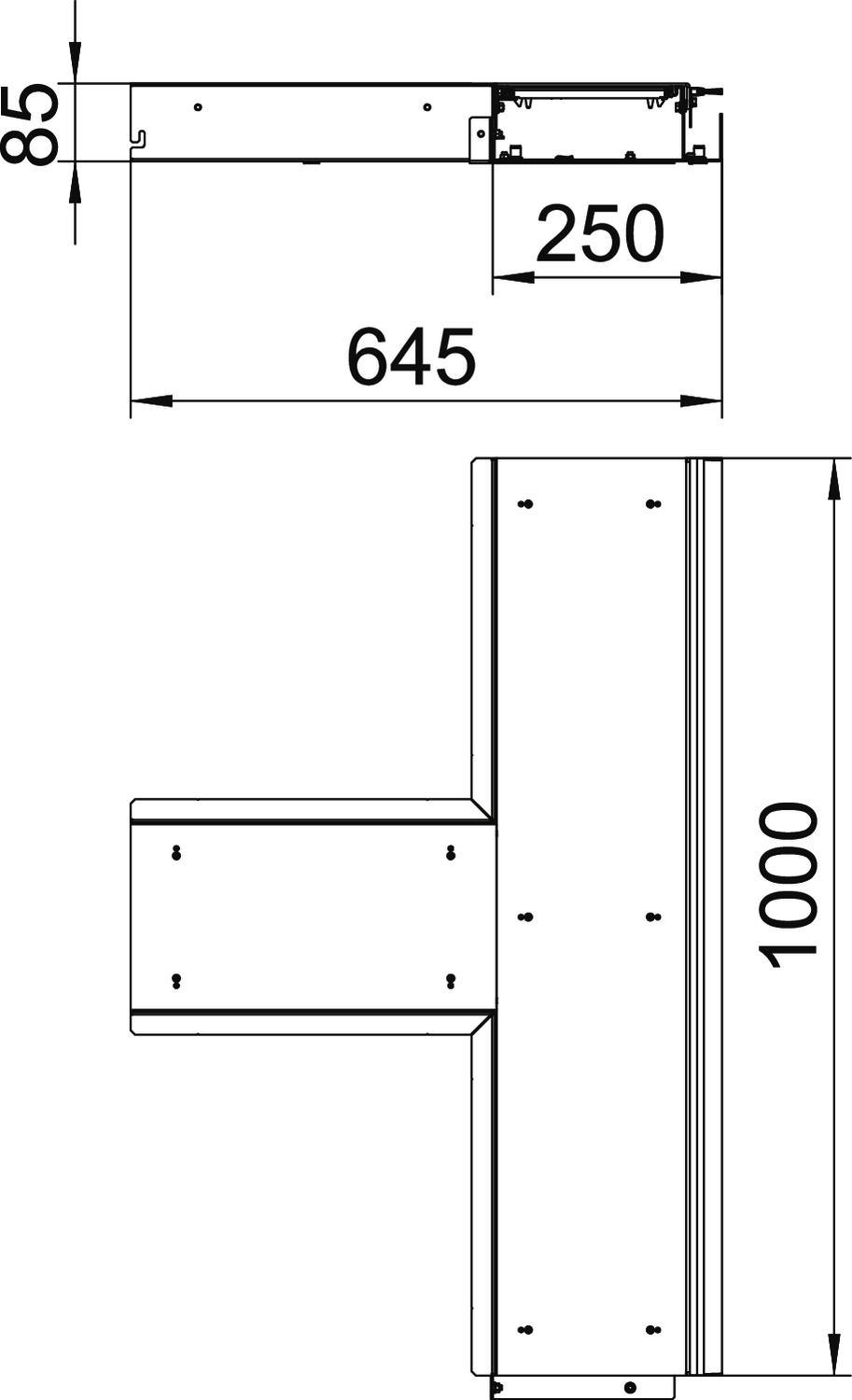 Descrição do produtoDerivação pronta a instalar, constituída por base, duas tampas, perfis laterais ajustáveis em altura. O material fornecido inclui duas vedações de impacto da tampa e duas uniões. Para ajuste em altura, são necessários seis niveladores.