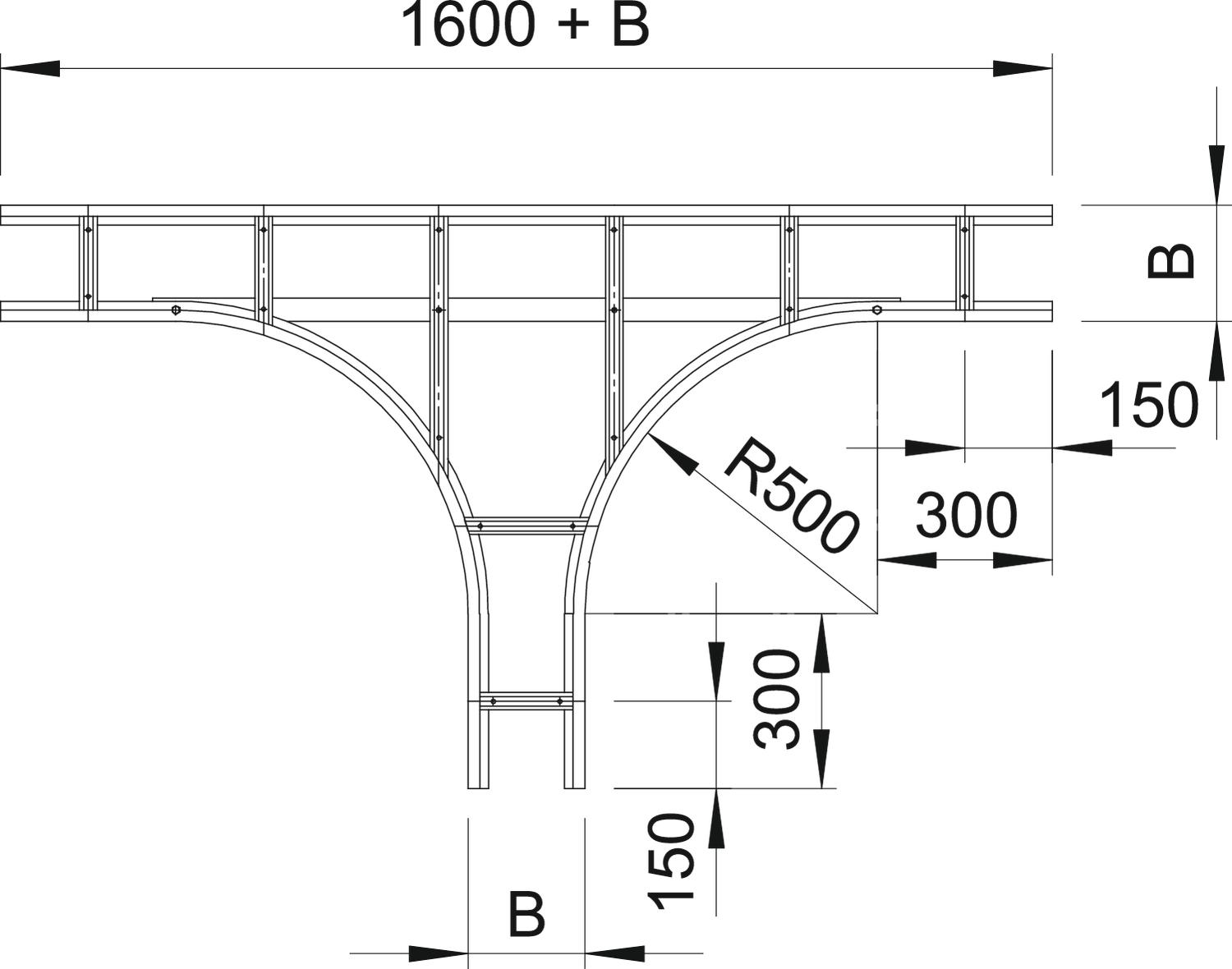 Descrição do produtoDerivação T, horizontal, para todos os caminhos de cabos tipo escada para grandes vãos com 110 mm de altura lateral.