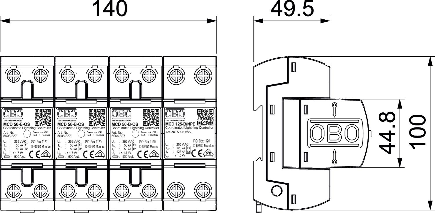 3 x MCD 50-B-OS: descarregador do tipo 1+2 EN 61643-11.