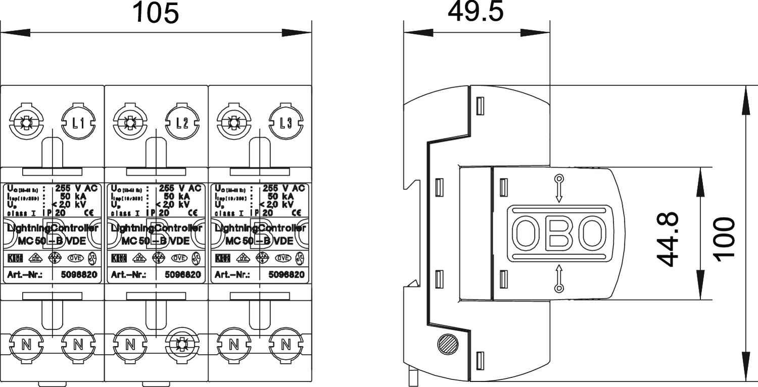 Descrição do produtoDescarregador de corrente de raio, 3 polos, para redes TN-C: