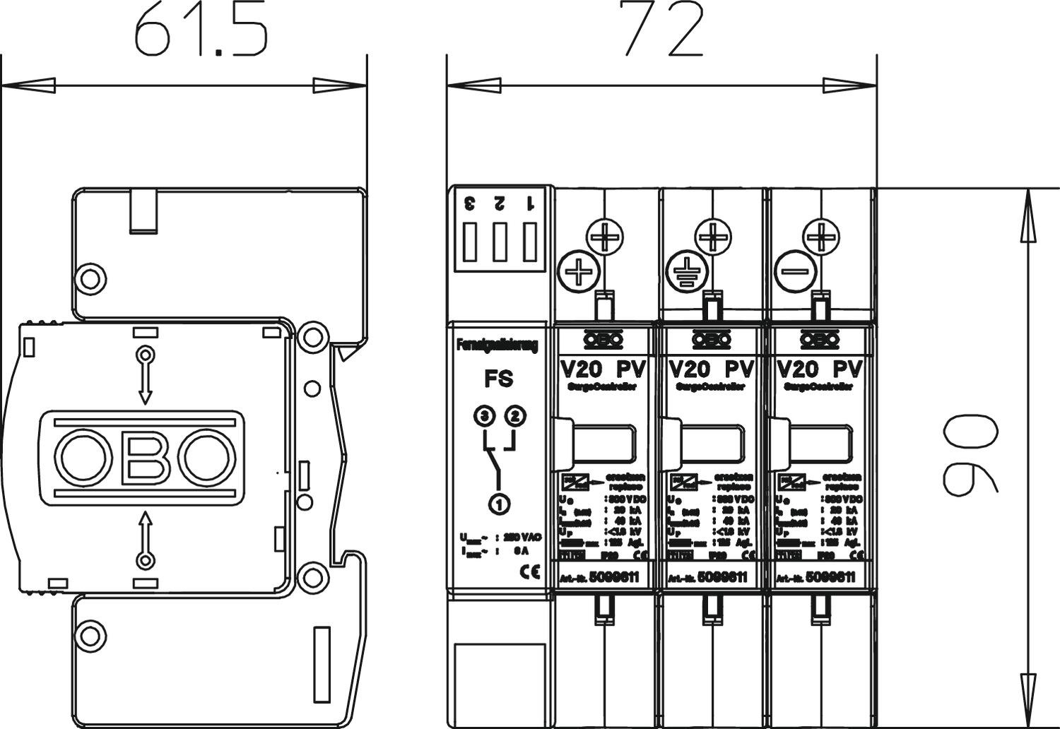 Descrição do produtoDescarregador de sobretensões V20 tipo 2 para sistemas FV com contacto SD como inversor sem potencial