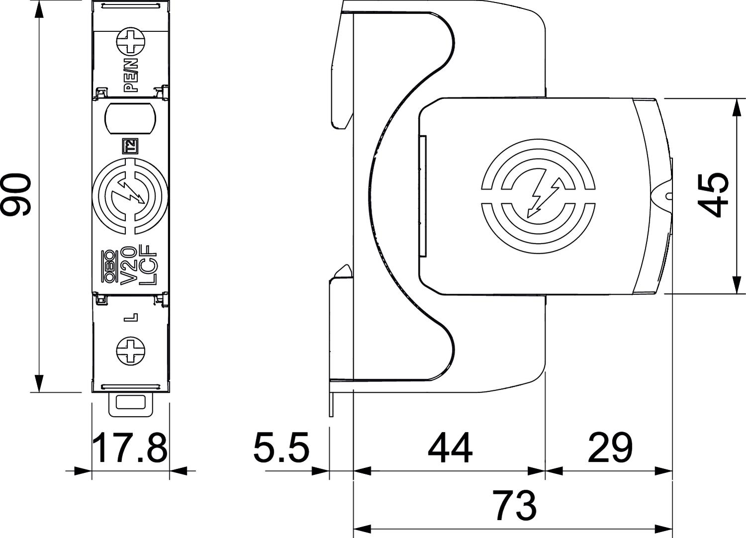 • capacidade de descarga até 40 kA (8/20) por polo através do varistor com capacidade de alto desempenho