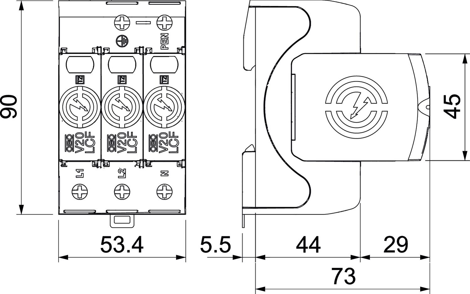 • capacidade de descarga até 40 kA (8/20) por polo através do varistor com capacidade de alto desempenho