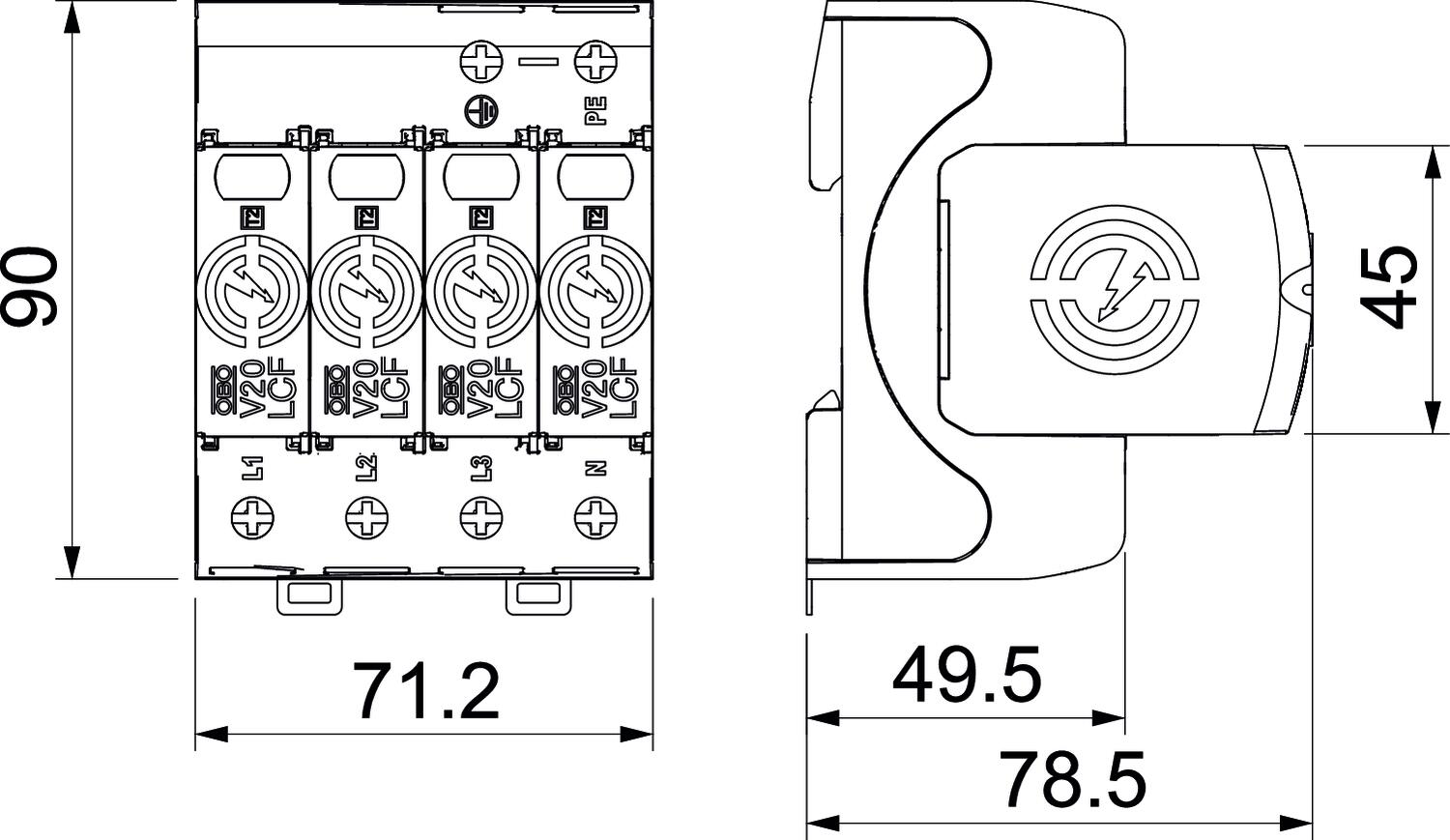 • capacidade de descarga até 40 kA (8/20) por polo através do varistor com capacidade de alto desempenho