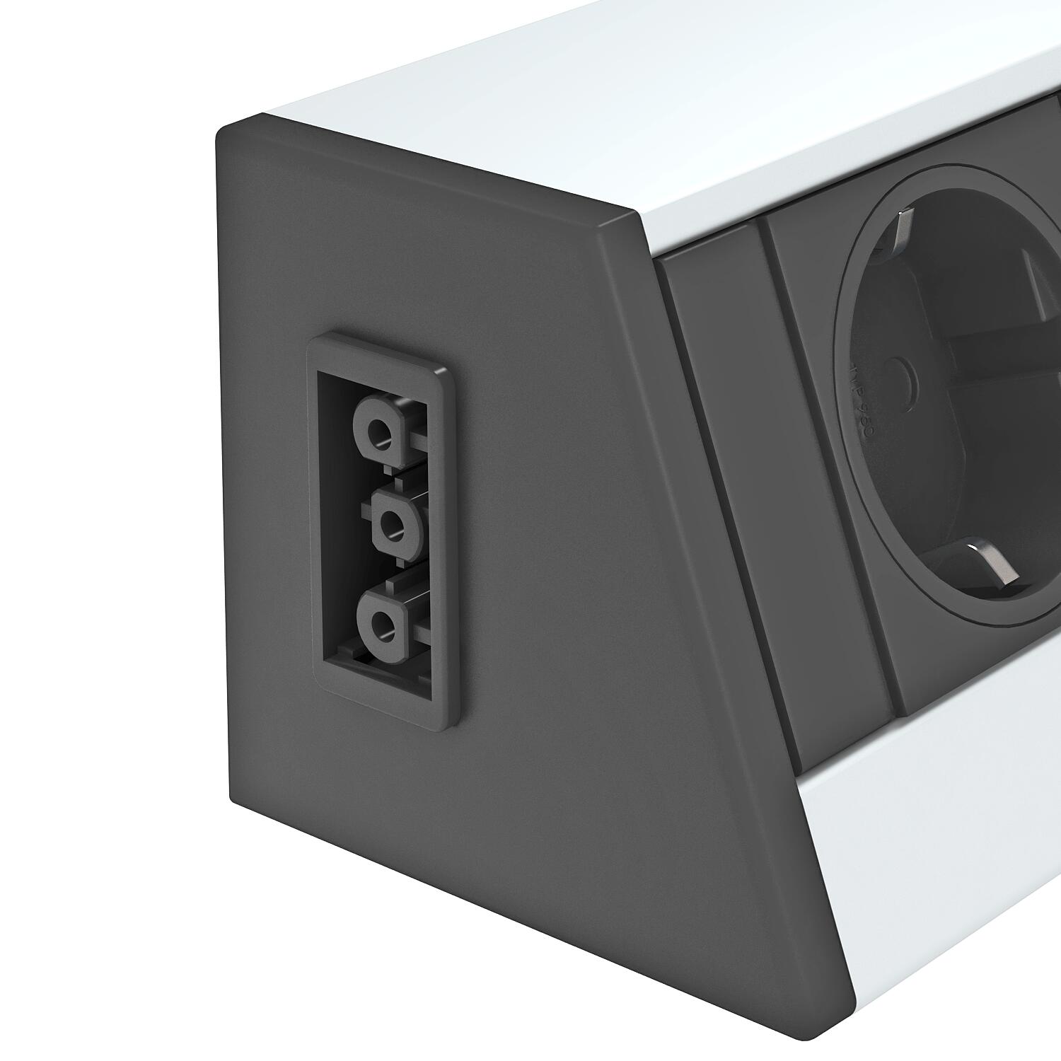 Descrição do produtoDeskbox com cabo de ligação sem material de fixação, combináveis com as soluções de fixação apresentadas nos acessórios, saída de cabo a partir de baixo no perfil.