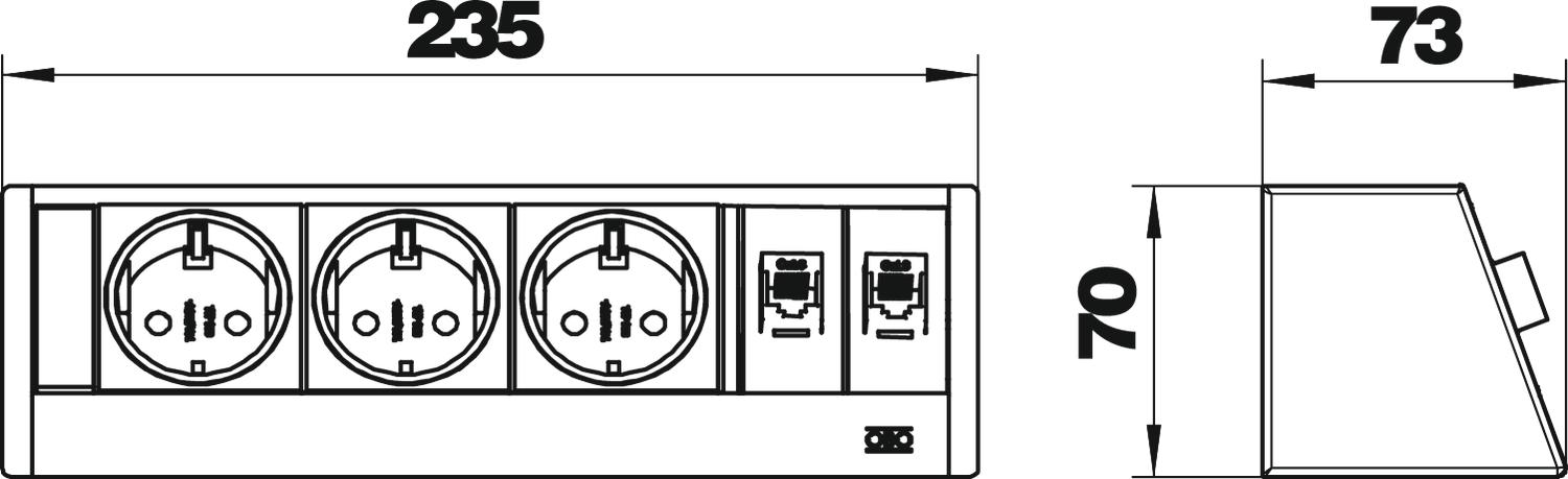 Altura 70 mm Comprimento 235 mm Comprimento da linha adutora 3 m Cor alumínio Elevável não Extraível não Material Alumínio Número de ligações CAT 6 2 Número de tomadas SCHUKO 3 Proteção contra sobretensões não Versão Caixa anodizada a prateado - Todos os tipos