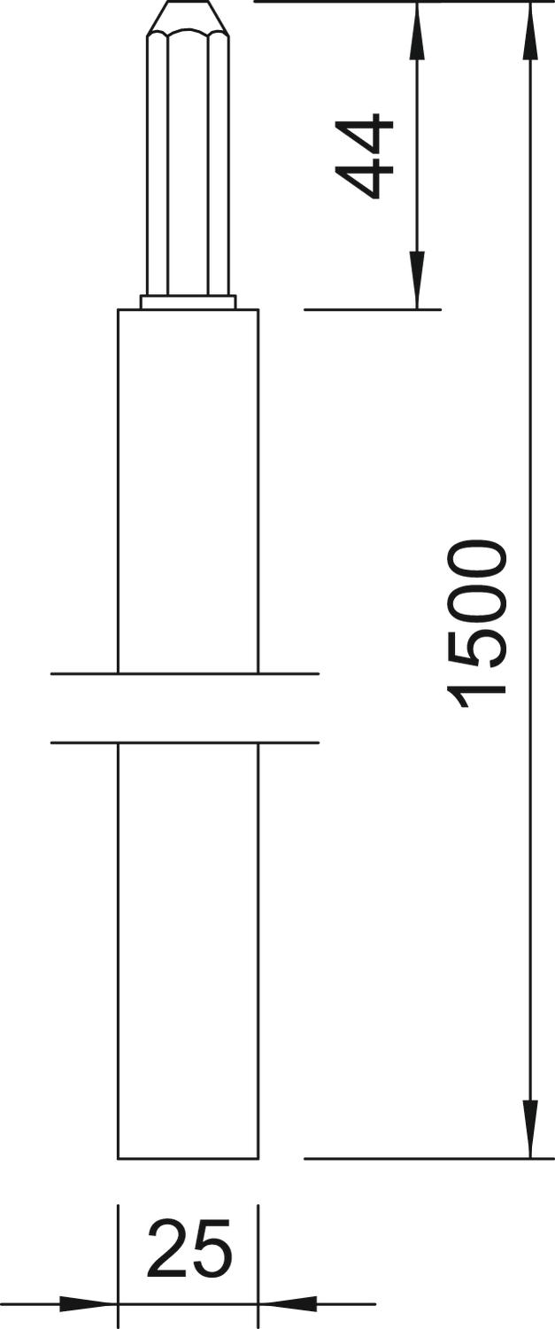 Capacidade de carga da corrente de raio H/100 kA Comprimento 1500 mm Corrente de curto-circuito (50HZ)(1s;≤300°C) 12,3 kA Diâmetro exterior 25 mm Dimensão 1,5m Material Aço Medida D 25 mm Pegada de CO2 (GWP) do berço ao portão 15,9491 kg CO2e / 1 Peça Superfície Galvanizado por imersão a quente após maquinação Tipo de perfil redondo D=25 mm - Todos os tipos