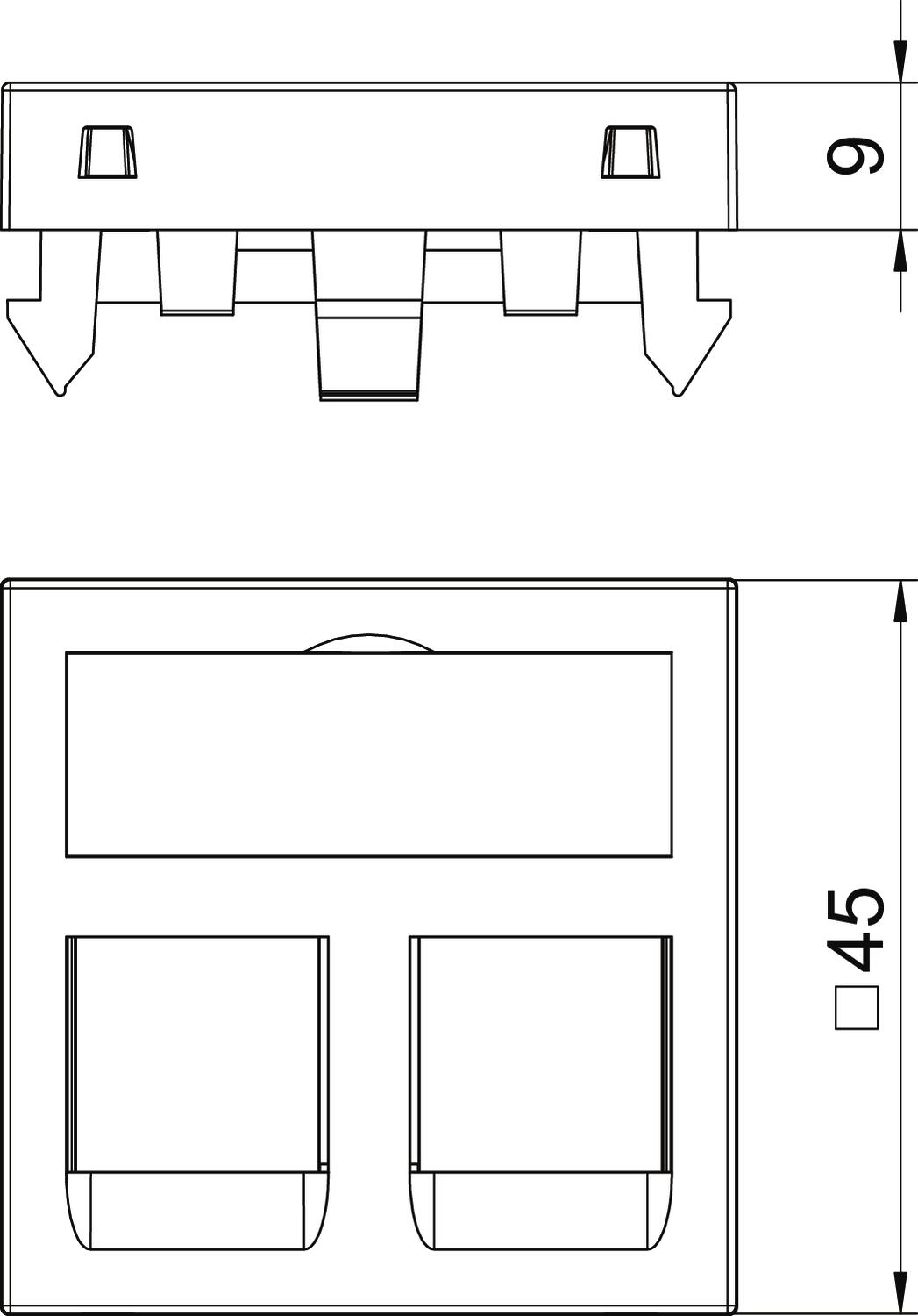 Descrição do produtoEspelho plano Modul 45 para 2 conectores de dados RJ 45. Não tem uma tampa deslizante de bloqueio, adequada tanto para a instalação vertical como horizontal. O Tipo C tem uma abertura de montagem de 19,30 x 14,80 mm e foi concebido para a fixação directa de conectores de dados.