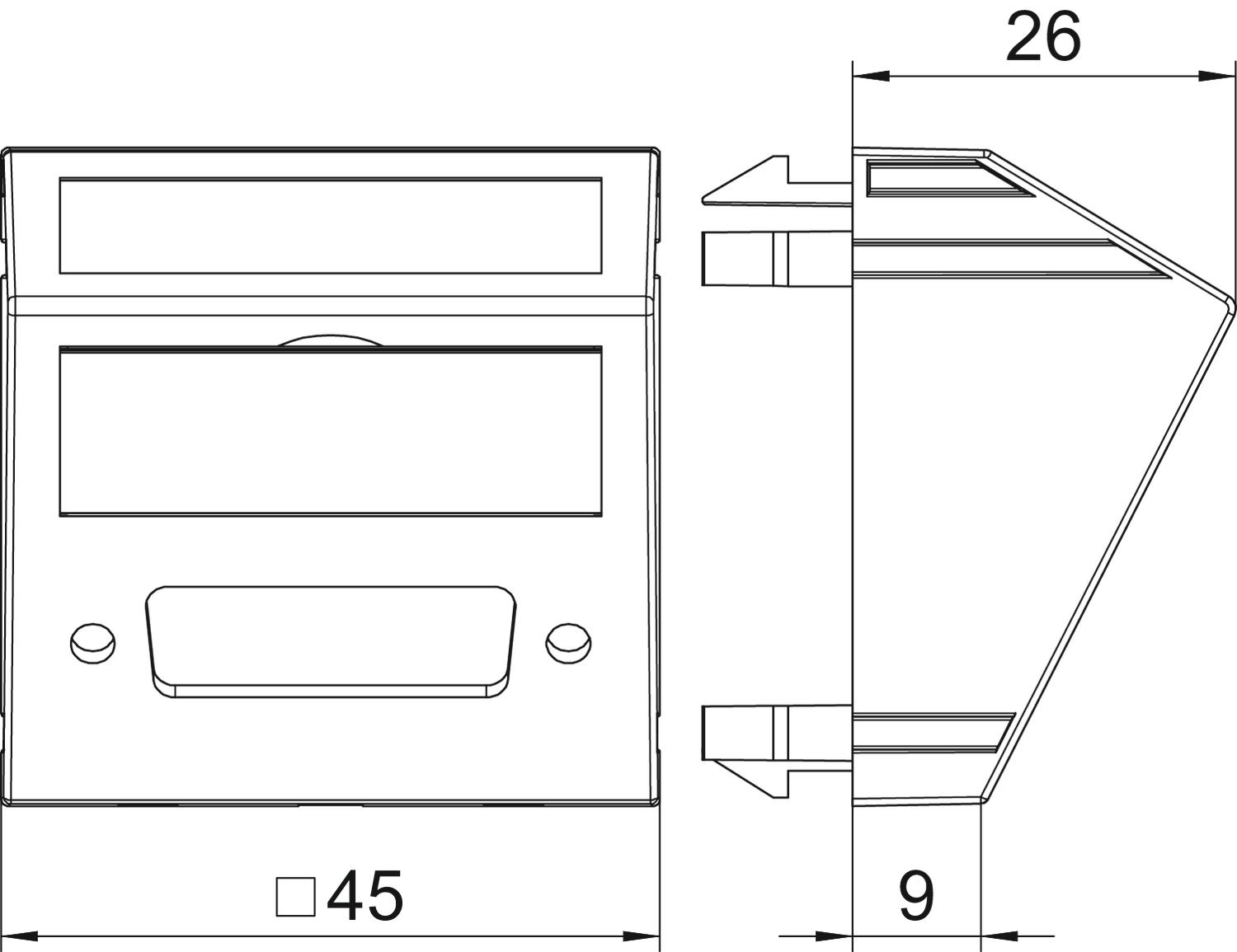 Descrição do produtoSuporte multimédia para um conector DVI, saída de cabo inclinada, com campo de inscrição, sem conector. Placa de suporte com fixação por encaixe, adequada para a montagem horizontal e vertical em todo o sistema.