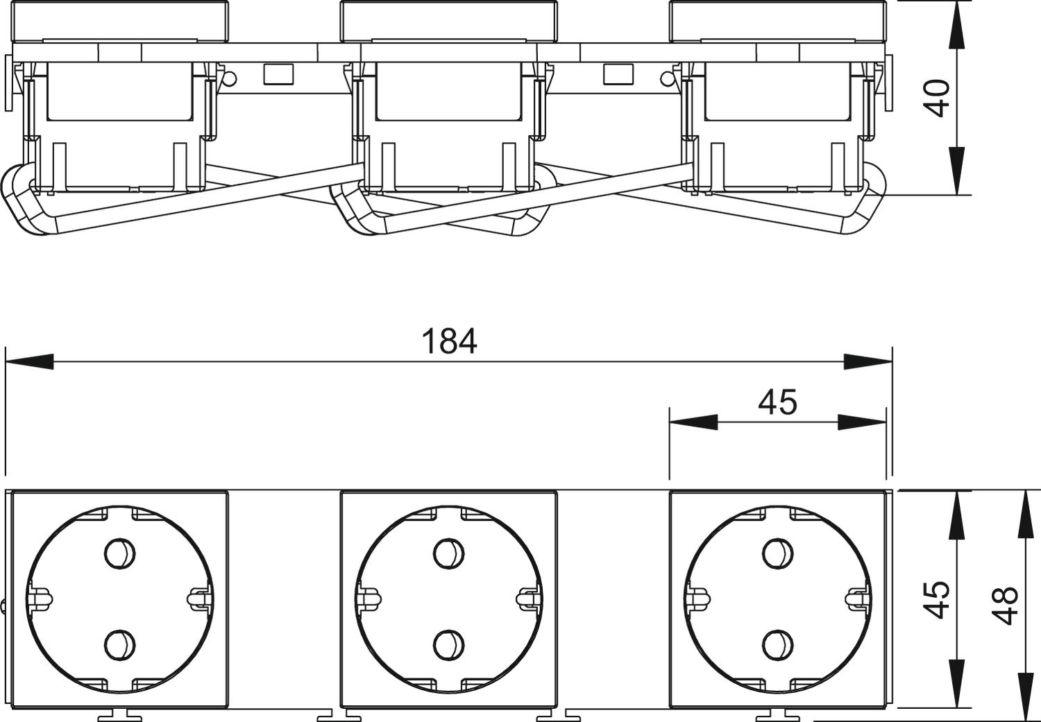 Descrição do produtoSuporte de aparelhos lateral pré-montado com três tomadas simples, para montagem em espelho MT45V.