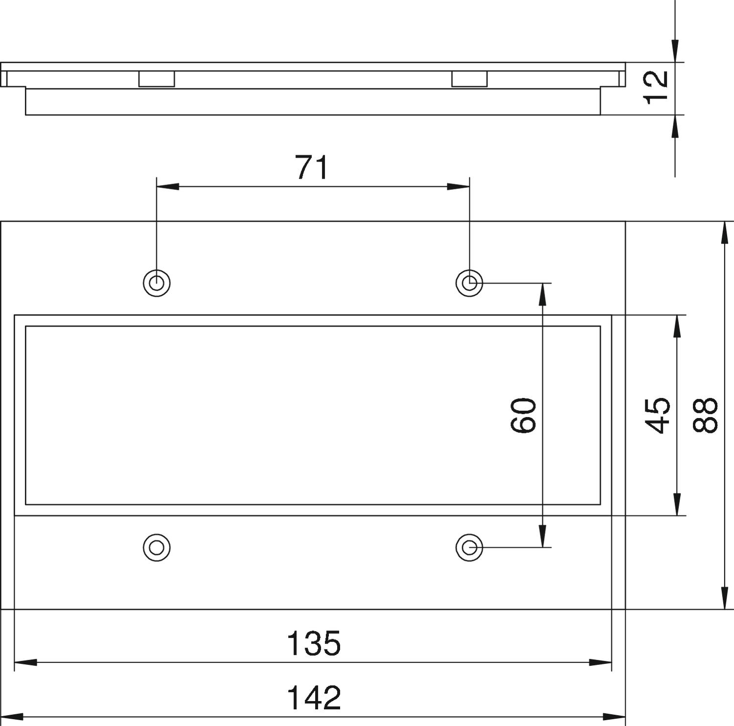 Descrição do produtoEspelho com abertura quadrada para uma tomada tripla do tipo Modul 45, adequado ao lado longitudinal T12L (tampa 1/2).