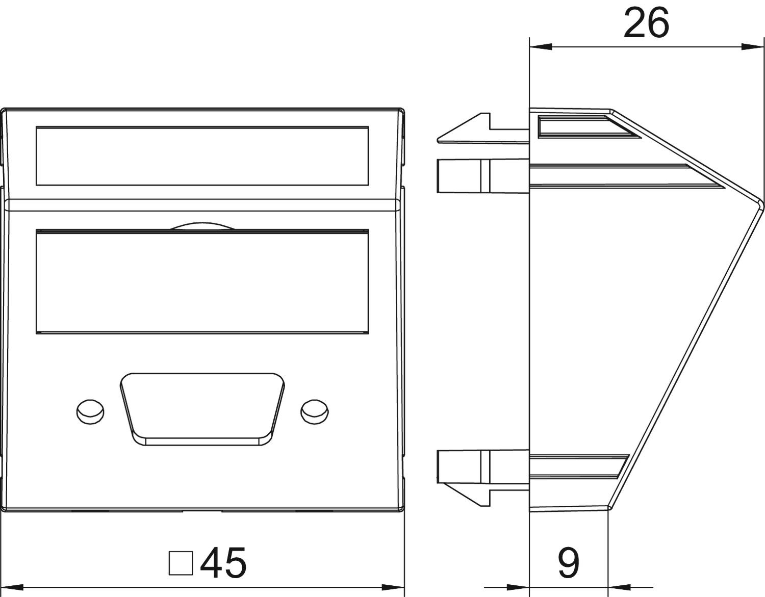 Descrição do produtoSuporte multimédia para um conector VGA / D-Sub9, saída de cabo inclinada, com campo de inscrição, sem conector. Placa de suporte com fixação por encaixe, adequada para a montagem horizontal e vertical em todo o sistema.