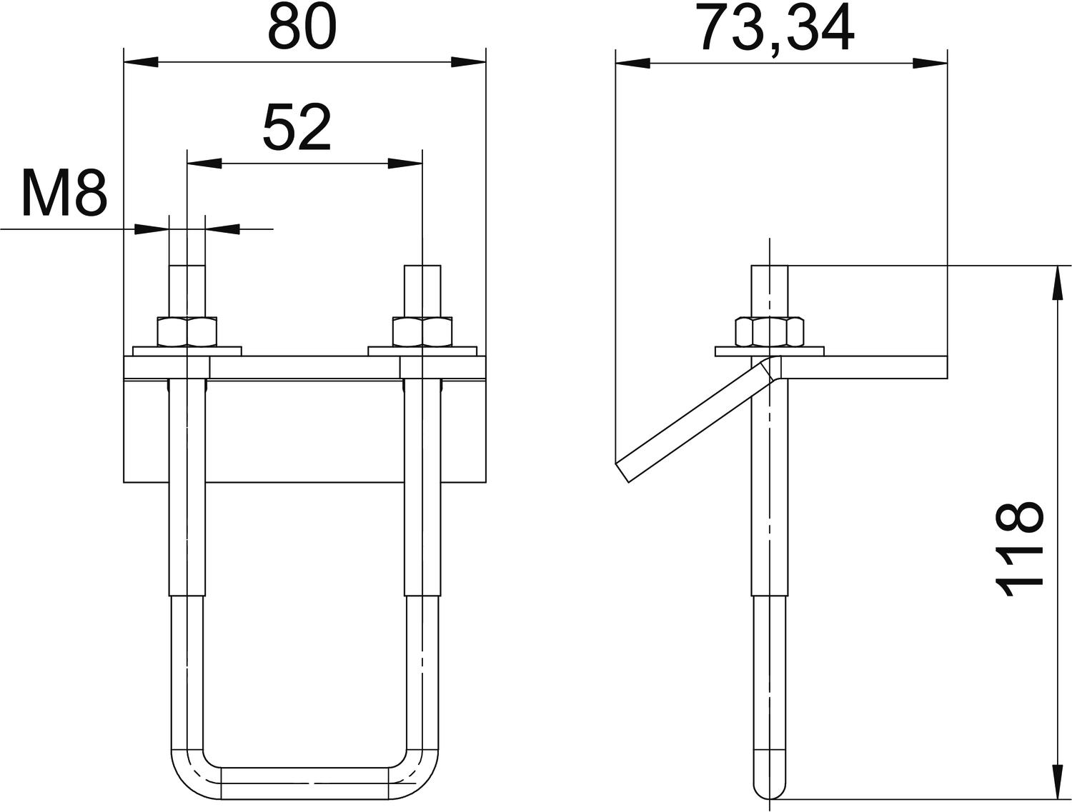 Altura 74 mm Carga de rutura 3,5 kN Comprimento 118 mm Espessura do flange F máx. 16 mm Largura 80 mm Material Aço Máx. Binário de aperto 20 Nm Pegada de CO2 (GWP) do berço ao portão 0,7202 kg CO2e / 1 Peça Superfície Galvanizado por imersão a quente após maquinação - Todos os tipos