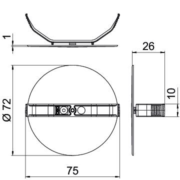 Altura 26 mm Com parafusos não Comprimento 75 mm Cor Preto Diâmetro 60 mm Dimensão Ø72 Forma redondo Largura 72 mm Livre de halogéneos sim Material Poliestireno resistência ao fio incandescente conforme a VDE 0471/DIN 695 Parte 2-1, temperatura de ensaio 650 °C Selável não Tipo de fixação Tampa de mola - Todos os tipos