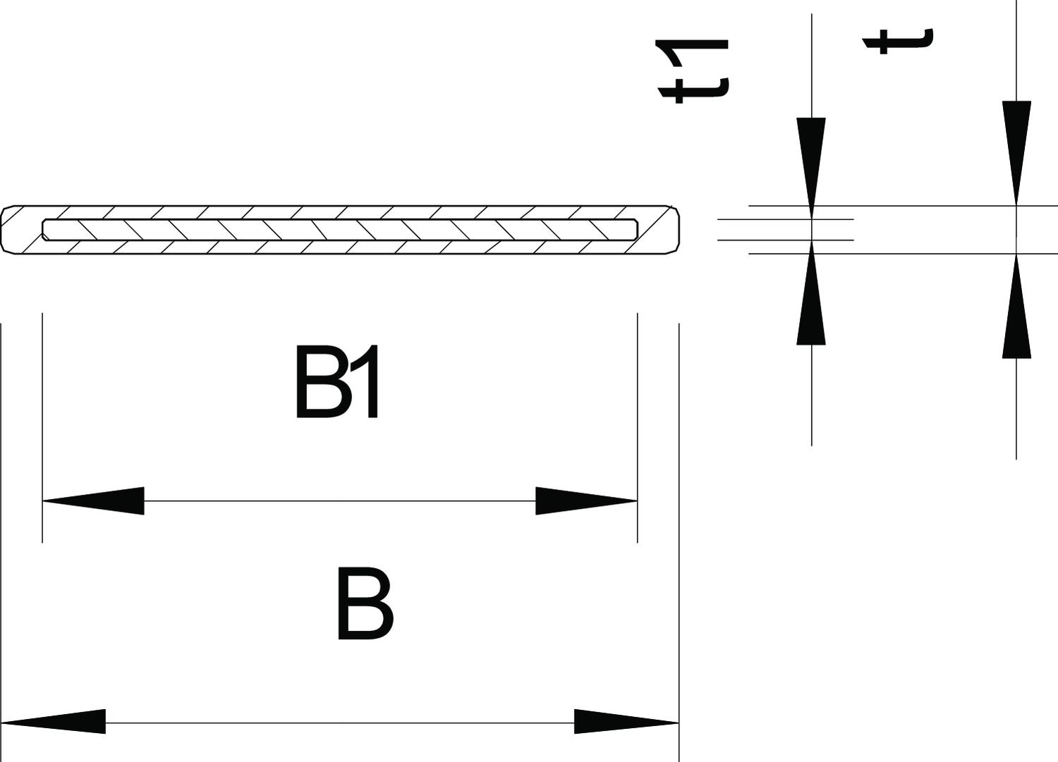 Carga admissível 4,19 kN Cor preto; RAL 9005 Dimensão 15x0,5 Dimensão 15,0 x 0,5 Material Stainless steel 1.4016 Medida B 17 mm Medida B1 15 mm Medida t 1,2 mm Medida t1 (mm) 0,5 Superfície revestimento de plástico Versão liso - Todos os tipos