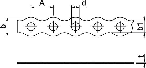 Descrição do produtoFita de suspensão perfurada em forma ondulada, para montagem, por exemplo, de tubos em paredes e tetos. Em rolo.