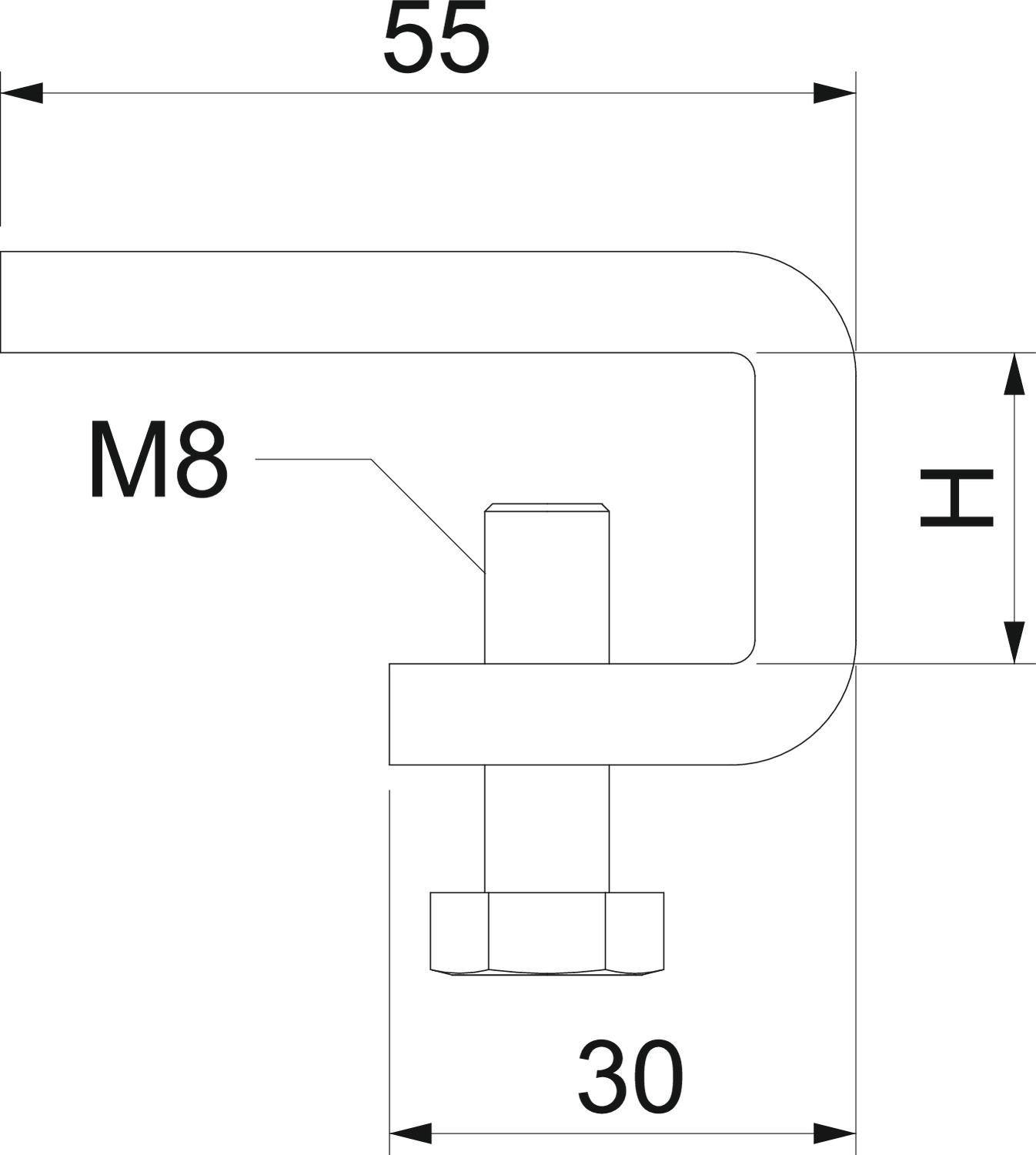 Para a seleção do fixador, ter em atenção a espessura do rebordo da viga de aço.