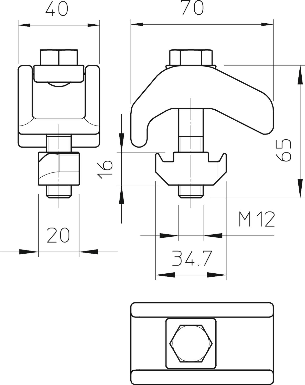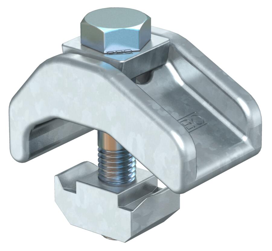 Descrição do produtoGarra de fixação na versão para grandes cargas com porca corrediça, para a fixação de perfis em vigas de aço.
