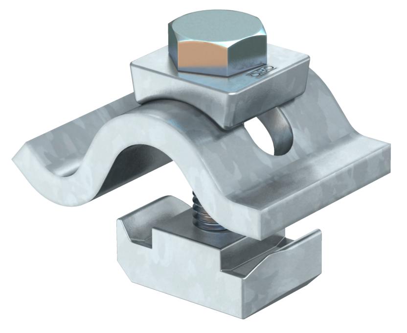 Descrição do produtoGarra de fixação, versão para pequenas cargas, com porca corrediça para a fixação de perfis em vigas de aço.