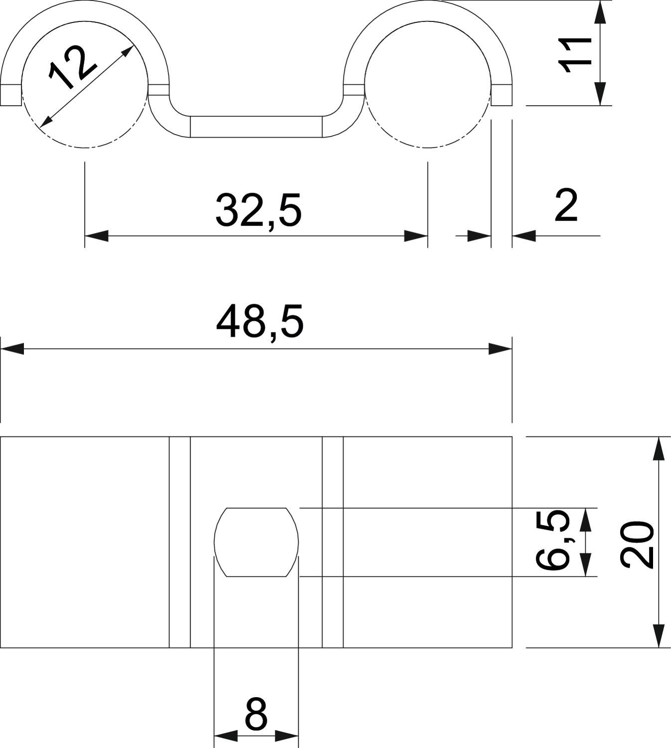 Descrição do produtoAbraçadeira para 2 cabos com fixação no meio