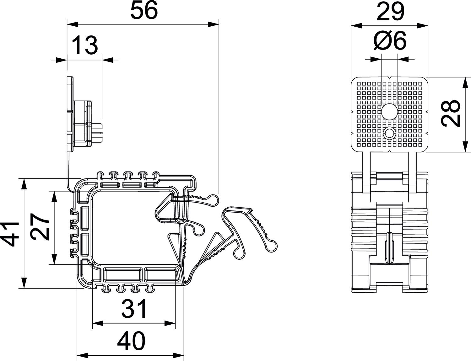 Descrição do produtoSuporte com elemento de fixação, para instalar até 10 cabos NYM 3 x 1,5 mm² na parede ou no teto. Fixação com cavilha de impacto ou cavilha de encaixe. Também adequado para fixação com dispositivos de fixação a gás e a bateria das marcas Bosch, Fischer e Spit (diâmetro interno de Ø 7 mm). Furo de fixação Ø 6 mm. Distância de fixação recomendada com ocupação total de 250-400 cm, dependendo das normas/vários requisitos nacionais aplicáveis.