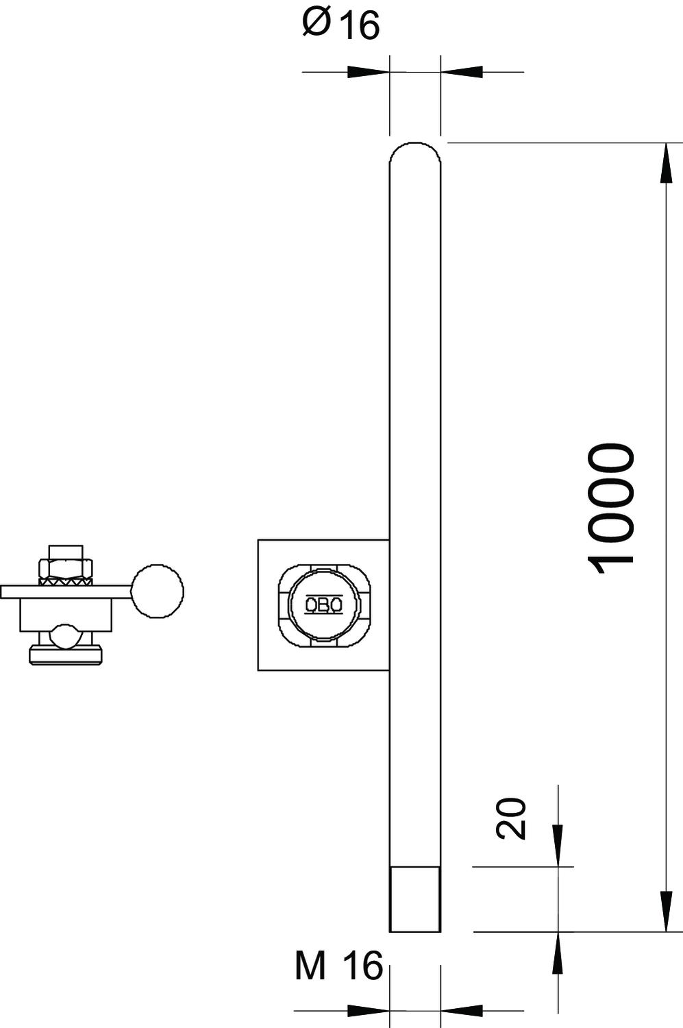 Comprimento 1000 mm Dimensão 1000mm Ligação Cabo de terras Material Aço Medida L 1000 mm Pegada de CO2 (GWP) do berço ao portão 3,8202 kg CO2e / 1 Peça Superfície Galvanizado por imersão a quente após maquinação Tamanho nominal Ø 16 mm Versão Haste captora Versão com isolamento fixo contra alta tensão não - Todos os tipos
