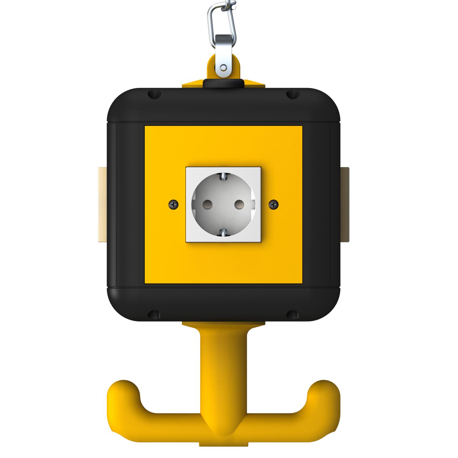 4 x tomadas Schuko simples de 16 A/250 V com proteção contra contacto reforçada, pré-cablada em dois circuitos de corrente alternada, ligação através de 2 x bornes de 3 pólos, com separador para a divisão dos circuitos de corrente.