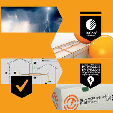 Destaques de produto para instalações de segurança e proteção Os nossos destaques de produtos em sistemas de proteção contra raios, sobretensão e proteção contra incêndio. Saber mais