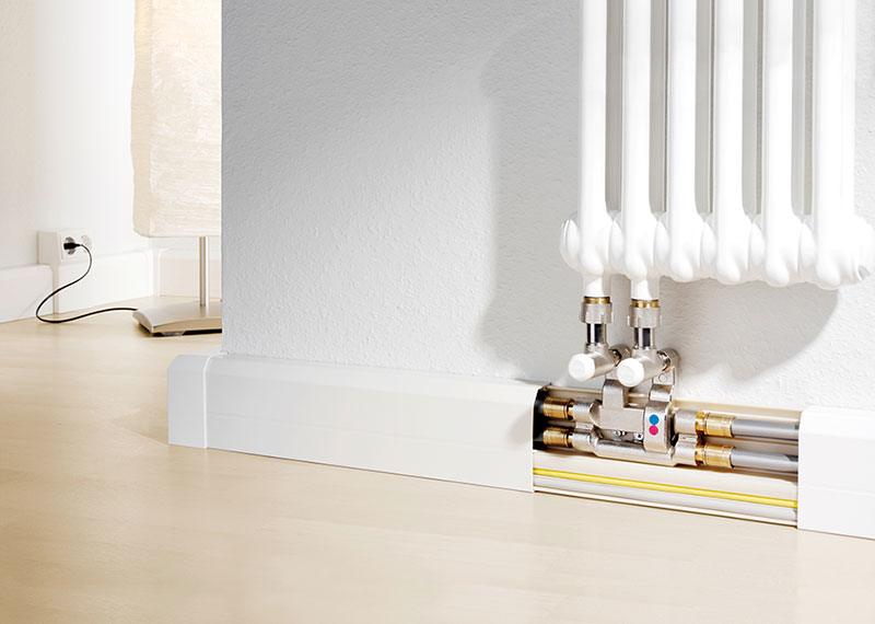 A calha elétrica e de aquecimento combinada RAUDUO é a ideia para uma renovação segura e de acordo com as normas de tubagem elétricas e de aquecimento, numa única calha de rodapé. Um amortecedor térmico garante o isolamento térmico funcional e testado. A calha elétrica e de aquecimento RAUDUO está disponível nas cores: branco creme RAL 9001 e branco puro RAL 9010.