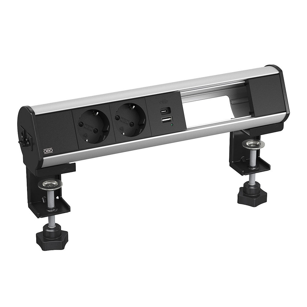 As Deskbox DBL são muito fáceis de instalar. Isto é assegurado pelo seu sistema de encaixe Wieland, que também permite a combinação com distribuidores de energia. Como a OBO se esforça sempre por oferecer a melhor solução possível e individualmente adequada aos seus clientes, também estão disponíveis variantes da Deskbox com o sistema de encaixe WAGO, mediante pedido. Também estão disponíveis caixas vazias com sistema de encaixe Wieland para montagem personalizada. As Deskbox DBL, como solução para mesa/secretária, podem ser convenientemente ampliadas com o sistema de encaixe Modul 45 adequado para OBO. Estão disponíveis variantes com carregador Schuko e USB e também com ligação para multimédia. As versões multimédia pré-equipadas, das tomadas de mesa/secretária para o local de trabalho, possuem uma grande abertura na parte de trás do painel através da qual os cabos multimédia podem ser convenientemente inseridos.