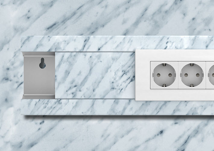 Tomadas, conectores, cabos elétricos e de dados – nada é visível do exterior. A calha técnica de design GAD é o produto de instalação mais precioso da OBO. Tudo o que mostra é uma frente nobre e maciça em alumínio. O que poderia perturbar a forma e o aspeto desaparece atrás da tampa oscilante, disponível em três formatos.