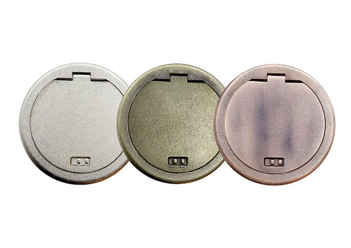As soluções completas da OBO em metal maciço estão equipadas com tomada de ligação à terra e a pedido podem ser completadas com conectores de dados. As suas tampas redondas são, conforme a seleção, cromadas, niqueladas, em latão ou cobreadas e integram-se exatamente em pavimentos de diversas cores. Fechadas também são adequadas para a limpeza a húmido.